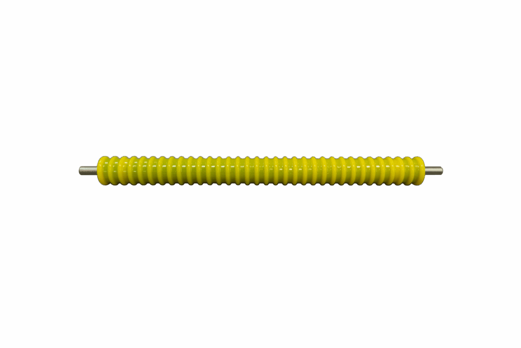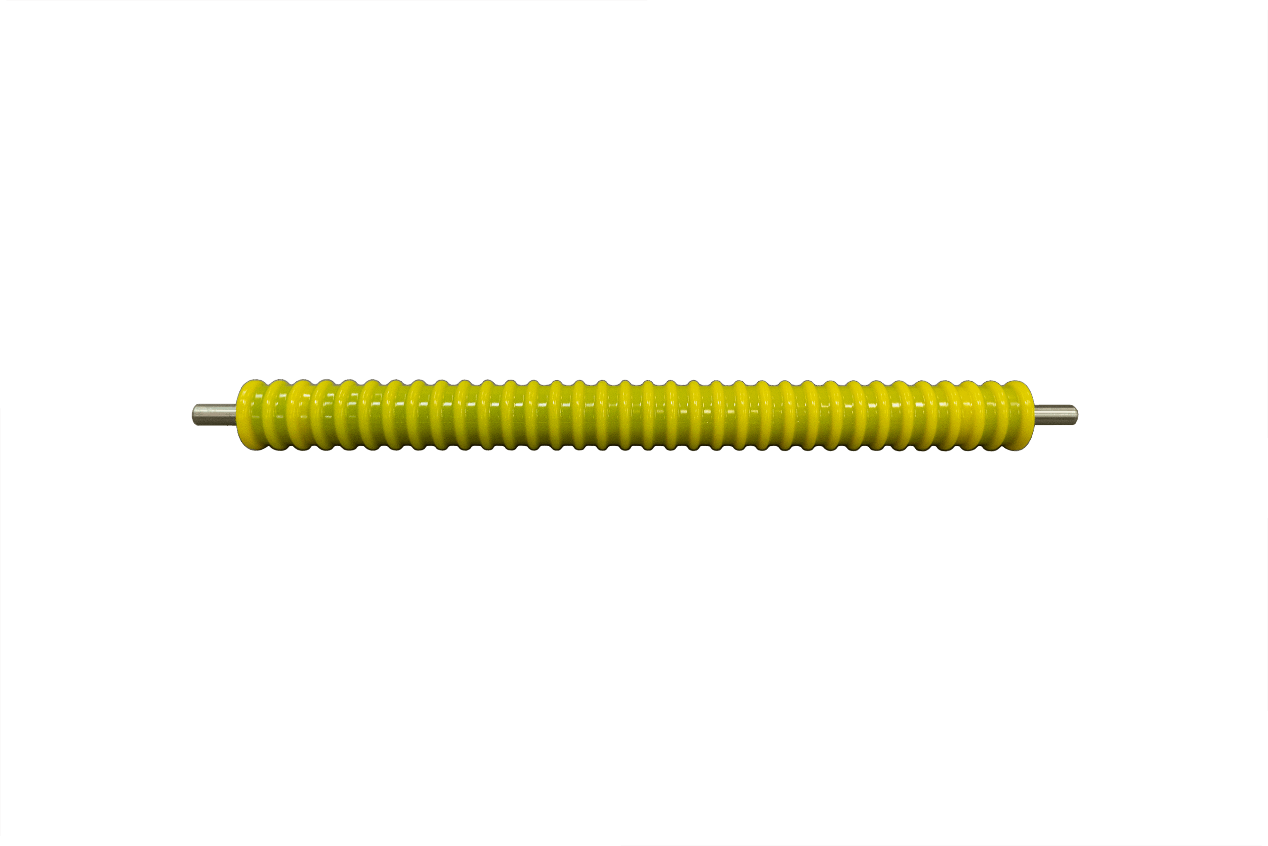Polyurethane body material is extremely abrasion resistant. Less uneven wear, cracking, denting, and overall longer life versus any steel rollers on the market. Unique grooved rollers that have gradual grooved crests and corners, not straight parallel grooves.